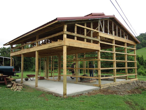 A new molasses making building is being erected at the Arnolds- burg Community Park, mostly enclosed but with more room and conveniences for the annual Molasses Festival in September
