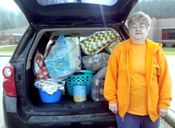 Sharon Settles delivers a trunk full of food and gifts