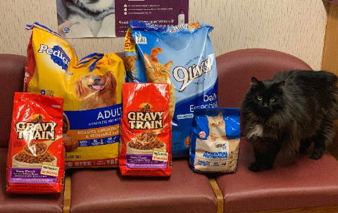 ![]() Some of the pet food donated by the Daisy Scout Troop