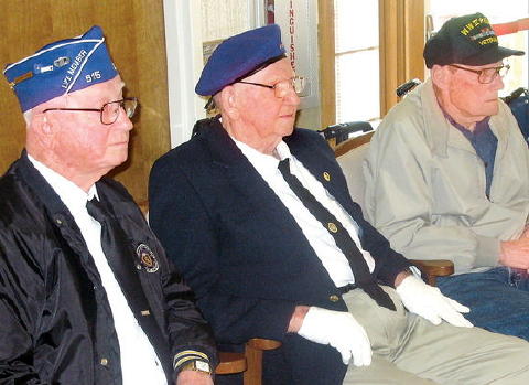 ![]() FRENCH FOREIGN LEGION AWARDS (L to R) Holly D. Eagle Jr., Denver R. Gandee and Walter Criss, now all deceased, at a ceremony inParkersburg recognizing them for receiving the French Legion of Honor for their service in the U.S. Army in World War II in France. Decorated WWII soldier, Holly D. Eagle, Jr., 95, of Mount Zion has passed. Eagle was awarded the French Legion of Honor, established by Napoleon in 1802.