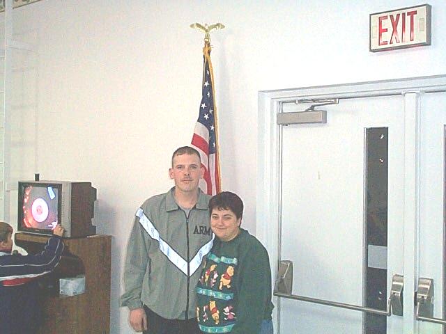 ![]() E-4 Jamie Starcher and wife Brenda A pretty fair sized crowd was on hand at the Wirt County Senior Citizens Center in Elizabeth to wish E-4 Jamie Starcher well as he goes onto active duty. His parents are Bernard "Bunk" and Kathy Starcher of Burning Springs. Having served for seven years in the 1092nd Engineers' Battalion of the Army National Guard at Parkersburg, he said he'll put all his training to good use in the near future. His current orders will take him to Fort Bragg, North Carolina for more training. After that, his destination is uncertain. His wife Brenda has indicated she'll keep everyone posted on his whereabouts as much as possible. It seems just a few days ago, at most (several years, actually - how time flies) that he was among the youngsters in the Christmas plays at the local church for which I played the piano. The slender little "Wise Man" I remember seems to have grown up and now, it feels very different to stand face to face with a soldier. Jamie will have the thoughts and prayers of his family, friends and community with him while he's away, and we're already anticipating a Welcome Home party when he comes back.
