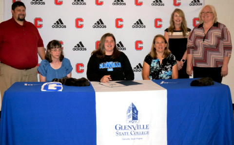 ![]() Kayla Ware, Calhoun Middle-High School, senior (above center) signed a letter of intent to compete on the Glenville State College track team on Thursday, May 23. Calhoun School's are proud of her a achievements as a Red Devil and are looking forward to seeing where her career goes as a Pioneer. "We are very excited to be getting a local student-athlete who has achieved some major success on the high school level. It is very important to us to be getting a Calhoun County athlete with the ability and work ethic that Kayla brings to the table," said GSC Coach Skiles regarding the signing of Kayla. Skiles says, Our institution has a long history of CCHS athletes, and we feel that the signing of Kayla Ware will re-kindle that relationship and open the door to more Red Devils coming our way in the near future. She is going to be a tremendous asset to our track programs throwing corps."