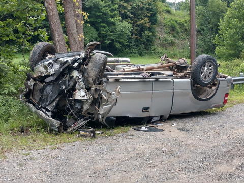 Photos courtesy of Arnoldsburg Volunteer Fire Dept. A vehicle wrecked on Rt. 16 near the Clay County line at 5:15 p.m. Wednesday, the vehicle landed on its top. Reports indicated that no one was taken to the hospital. Calhoun EMS, Upper West Fork VFD, and the Arnoldsburg VFD responded, along with the Calhoun Sheriffs Department.