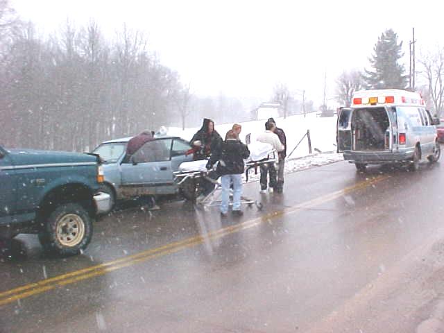 Five vehicles involved in crash The highway was rain-slick with snow flurries. Deputy Carl Ballengee investigated the accident. The Grantsville Volunteer Fire Department also responded to the scene. Calhoun EMS responded to a single vehicle accident on Nighcut Hill on Route 5 west of Grantsville at 8:45 p.m. Friday night. The vehicle went out of control and went over the hillside, landing in a hollow. The driver of the vehicle was not transported to the hospital. The Grantsville VFD responded. |
