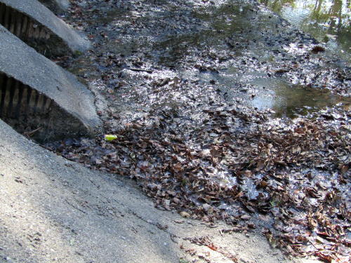 STOPPED: PENCIL-THIN STREAM OF WATER FLOWING DOWN WEST FORK OF LK |