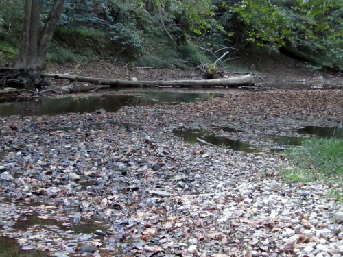 9/25/2017 - It's mighty dry in Sunny Cal, and today not a single drop of water was flowing down the West Fork of the Little Kanawha River at Rocksdale. 9/17/2019 - Today, the West Fork of the Little Kanawha, which has headwaters in Clay, Braxton and Roane counties, was moving a stream the size of a pencil under the low-water bridge at Henry's Fork (near Rocksdale). Calhoun's green forest is sucking up the last ground water as fall approaches, with little rain in the forecast.