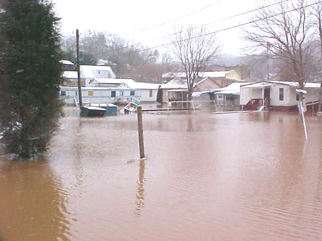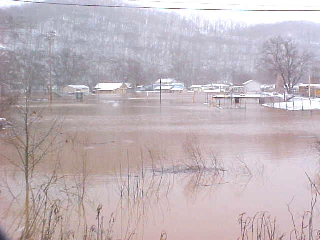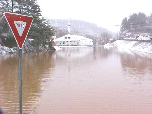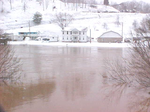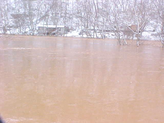 By Bob Weaver Rainfall stopped in the nick of time early Sunday morning, preventing major flooding in the region. The Little Kanawha River went out of banks along Route 5 from Glenville to Grantsville and downstream before noon, and then began to recede. Grantsville resident Roger Jarvis, whose house was at risk for flooding, said the river was coming up 3-4 inches an hour at 3 a.m. More severe flooding was experienced in Glenville. (See Glenville and Wirt flood photos on The Herald) The Grantsville Volunteer Fire Department continued their around the clock work in assisting a few individuals and families to evacuate their homes. The Senior Center in Grantsville was opened for those displaced by the water. Yesterday's flooding could be a climax to two weeks of severe weather that struck the region. Calhoun and Roane County have been among the hardest hit, according to the National Weather Service. However, more snow is predicted today.