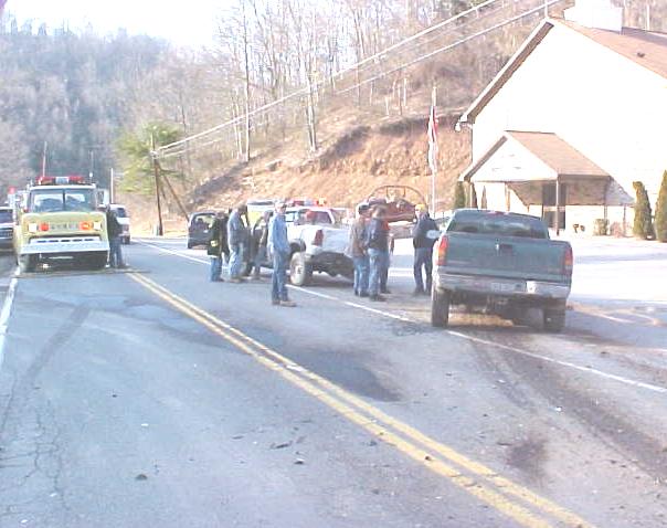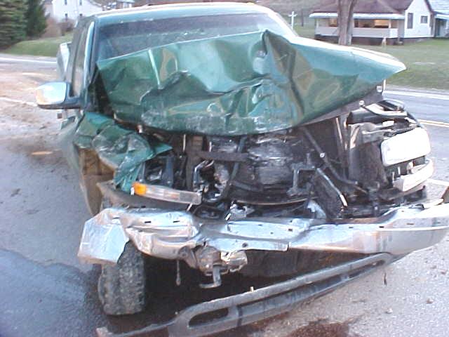 One truck heavily damaged Two trucks crashed into a van that was turning left off Route 16 south of Grantsville yesterday evening. Jennifer Shock, the driver of the van, was taken to Minnie Hamilton Health Care Center for evaluation. One truck was driven by Dale Bruce Martin of Grantsville. The other driver is unknown at this time. The vehicles were traveling north, when the accident happened in front of the Victory Baptist Church at 4:15 p.m. One of the trucks sustained heavy damage. Calhoun EMS and the Grantsville Volunteer Fire Department responded.