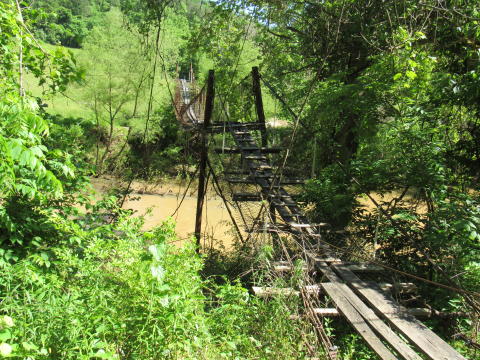 A decayed swinging bridge allows access by foot A Calhoun Road has been closed indefinitely, according to the WVDOT in Parkersburg, effective May 19. A low water bridge at Raccoon Run, which has been in disrepair for years, has continued to collapse. The low water bridge is across Steer Creek along Russet Road. The problem causes a few residents difficulty in reaching the outside world.