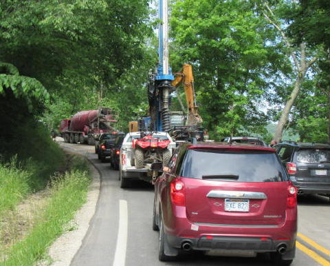 A WV-DOH contractor is working on fixing a bad slip on Rt. 16 just south of Arnoldsburg which had reduced traffic to one way, the site being the scene of several accidents