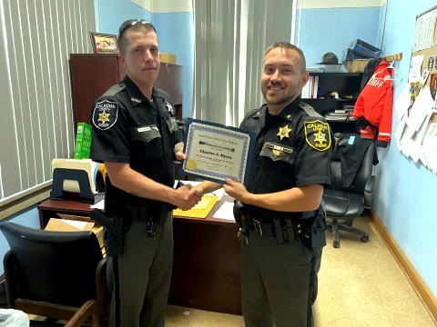 ![]() Deputy C. J. Myers (left) and Calhoun Sheriff Jeff Starcher Calhoun Deputy Sheriff C. J. Myers graduated Friday from the WV State Police Academy, the third deputy to have graduated from the academy, the department know has three certified officers for the first time in years. Sheriff Jeff Starcher said, "I couldn't be more proud of our officers and the department that we have built."