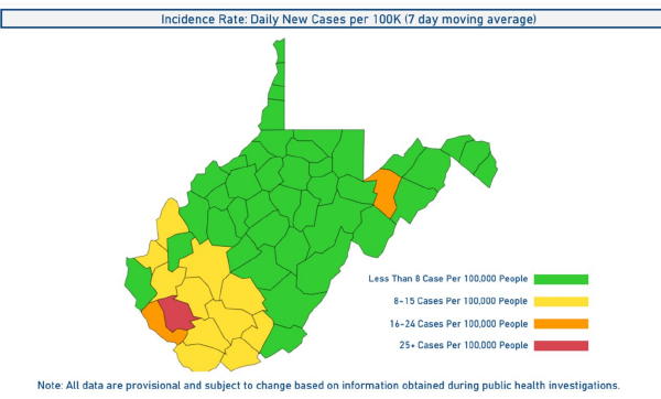 | The West Virginia Department of Health and Human Resources has published its color-coded metric to determine whether schools can hold in-person instruction and scheduled athletic and extracurricular activities.