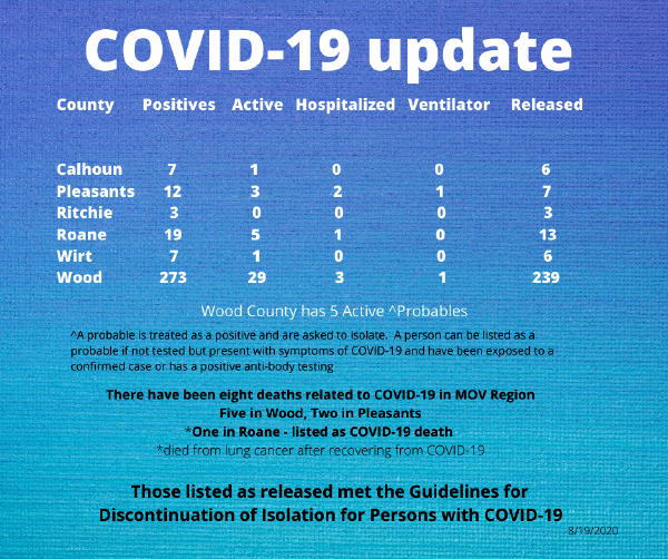 WOOD COUNTY HAS 5 ACTIVE PROBABLE COVID-19 CASES