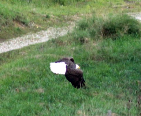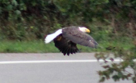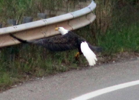 Shirley Naylor took photos of an eagle from the front porch of the Naylor home at Millstone Sunday evening. The eagle was feasting on road kill. Naylor said, "This isomething I never dreamed of seeing this close to home."