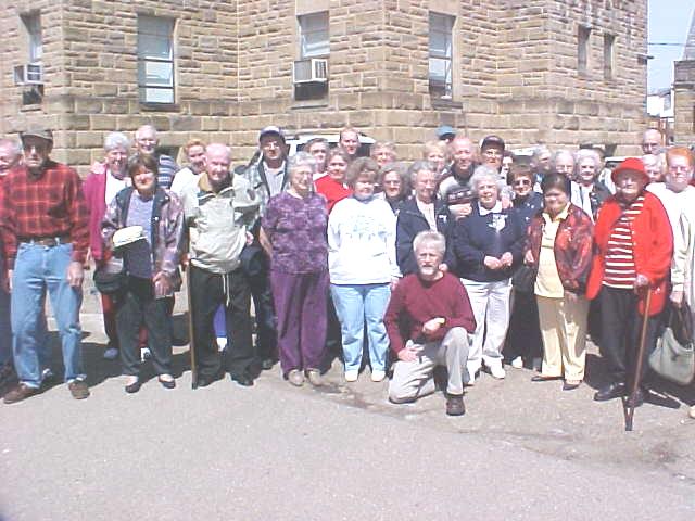 ![]() Many of those attending celebration gathered next to the courthouse Some of the Grantsville seniors gathered across the street yesterday after their 30th anniversary celebration for a picture. One needed a fancy panoramic camera to capture the bunch, but we had to make do. First the group shot and then three smaller pictures, closer up, of the celebrants - all to be placed in the CCCOA Time Capsule, which will be opened ten years hence. Here are the closer shots: