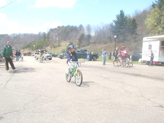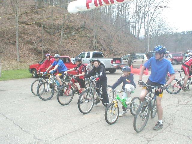 ![]() Challenge at Mountwood High School/Middle School Race - April 5th, 2003 The first WV Mountain Bike Association Youth Series Race took off at noon yesterday at Mountwood Park near Parkersburg. Ten racers representing 4 schools competed in three race classes - Varsity (grades 9-12), Junior Varsity (grades 9&10) and Middle School (grades 5-8). Matt McDonald and Hank Hendrix of Parkersburg took first and second place in the Varsity class, followed by Lori Ware and Caleb Haynie, both members of Clay County HS's Mud Mashers. Dallas Stutler, another Clay County HS Mud Masher, was the sole racer in the Junior Varsity class. In the Middle School class, Randy Ramsey (Clay) finished first, Cai Clothier (Calhoun) second, then Paul Brown and David Haynie (Clay), followed by Dalton Hodge (Worthston Elementary). Cai Clothier, a 5th grader, also races for the WV Mountain Bike Racing Team. This race series is designed to introduce students to the sport of mountain biking through competition is short cross country races - the Mountwood Race was about 3 miles for the Middle School & JV Racers, and about 5 for the Varsity. Be at Mountwood Park on Sunday, April 6th at 10 a.m. for the WVMBA Kid's Races - these short races are for kids 12 and under (6 & under, 7&8, 9&10, and 11&12) - and it's FREE! The feature WVMBA Point Series Race starts off at noon, with a course of 6 to 18 miles, depending upon race class. Mountwood Park is located about 12 miles east of Parkersburg off RT 50. For further info, call Craig Pyles at 304-679-3611.