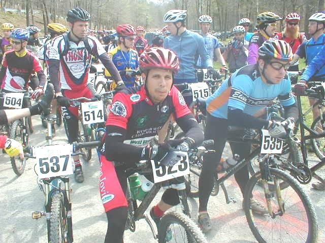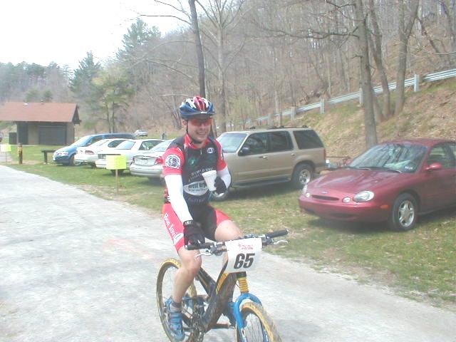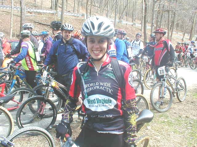 | Submitted by Diann Clothier The WV Mountain Bike Racing Team hit the trails Sunday at Mountwood Park in Waverly, WV, for the 2nd WV Mountain Bike Association Point Series Race of 2003. The WV Mountain Bike Racing Team is sponsored by WV Tourism, Worldwide Chiropractic, rock star Jon Bon Jovi, the Charleston Bike Shop, and Cannondale. Mandy Riddle, racing in the Women's Expert Class, and Mark Johnson, racing in the Men's Sport 26-35 Class, both took first place. Clay Evans, Men's Pro/Expert Class, placed 2nd, and Brian Fawley, Men's Junior Expert Class, placed 4th, along with team manager, Steve Thaxton, racing Pro/Expert Vet. The Pro/Expert classes races a course of 28 miles. Sport riders had to complete a 16 mile race, and the Masters and Juniors raced 8 miles. Linda Brison, Women's Master Class, took 1st place, and Courtney Dudley placed 3rd in the Women's Sport Class. Will Clagg placed 4th in the Men's Sport 19-25, but the team's littlest member, Cai Clothier (Junior 14 and under) did not finish the 8 mile cross country race, but did place 1st in the Kids' Race for the 11&12 year old group. Come Watch the WV Mountain Bike Racing Team compete next Sunday at Big Bear, near Hazelton WV!