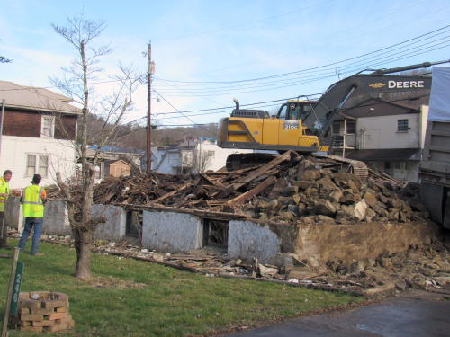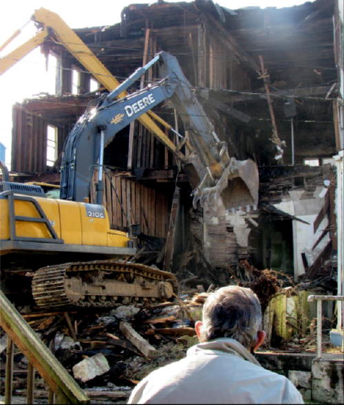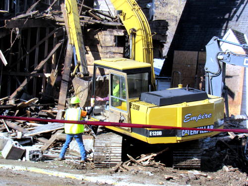 By Bob Weaver 2023 After more than 100 years, Grantsville's delipidated Rainbow Hotel has finally been razed. If the walls could talk, what stories would they tell. Multiple efforts started in the late 1990s to demolish the eyesore, mayors, councils and citizen activists. Many feared the structure would be a victim of arson, causing another firestorm in the town. Today, nearby households and locals turned out to watch the action.