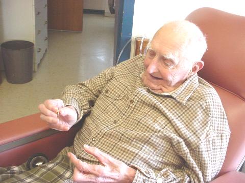 ![]() George Whipkey Submitted by Jan Poling Activity Director Members of the Burnt House Harmony I.O.O.F. Lodge visited George Whipkey at Minnie Hamilton Health Care Center- Long Term Care on On March 31st. Mr. Whipkey was presented a 50 year membership pin by members, Jiggs Reeves, Bob Newton, John Freshour, Larry Collins, and Monroe Bailey. Mr. Whipkey who was very surprised said he had not expected to ever receive anything like this and was very honored to receive the pin. He also stated that he was very proud of the organization, and thanked them so much for honoring him. Mr. Whipkey also celebrated his 97th Birthday on March 25, 2003. |