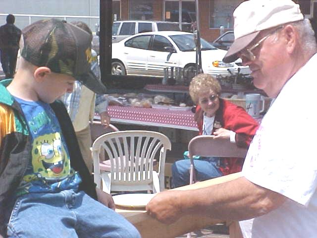 ![]() Rev. Harry Siers promotes the dime toss for Enon Church.