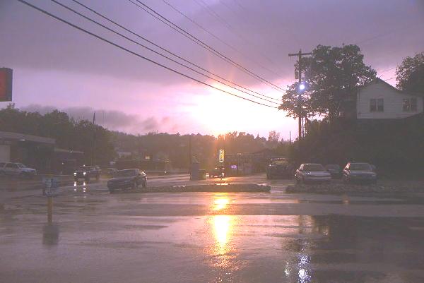 The only little bit of sun we have seen all day peeking through at 7:50 p.m. from Foodland parking lot looking into town. All photos taken May 10