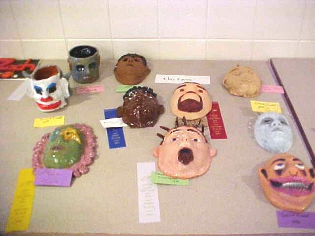 ![]() Ms. Jo Moellendick's art classes are having an exhibit at Calhoun High School. Sherri Johnson judged the entries Thursday and ribbons were awarded in several categories. The exhibit will be open for viewing during the Follies. Categories and winners are: Oils - Laura Pfeffer, Josh Simmons, David Dodd and Tanya Brannon Clay Faces - Marcus Davis, Tim Parkin, Steven Cunningham, and Caitlin Weaver Masks - Emily Yoak, Trinity Arthur, David Dodd and Brad McCroskey Ceramics - Gina Davisson, Emily Yoak, Katie Walker and Tanya Brannon Color Pencil - Tiffany Tanner, TJ Roberts, Jeff Starcher, and Katie Walker Pencil - Tiffany Tanner, Emily Yoak, Brandon Bunner, and David Dodd Plaster Carving - Emily Yoak, Tiffani Godfrey, Zack Houchin and Tabitha Collins Tempera - Tiffany Barr, Matt Cummings, Caitlin Weaver and Casey Boatright Pen and Ink - Josh Simmons Fabric - Caitlin Weaver, Brittney McCoy, TJ Roberts and Justin Whipkey Painted Bottles - Laura Pfeffer, Chad Conley, Tiffany Barr and Katie Walker Oil Pastels - Katie Walker, Zack Houchin, Tanya Brannon and Mitchel Cunningham Watercolors - Katie Walker, Trinity Arthur, Caitlin Weaver and Mitchell Cunningham Some of the entries: