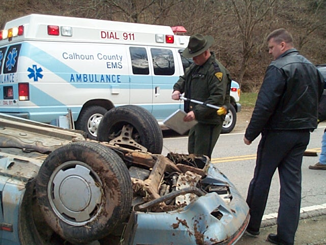 as a total loss. Calhoun EMS responded with two ambulances. The Arnoldsburg Volunteer Fire Department also responded. State Trooper J. B. Hunt and Deputy Ron Bandy investigated the accident.