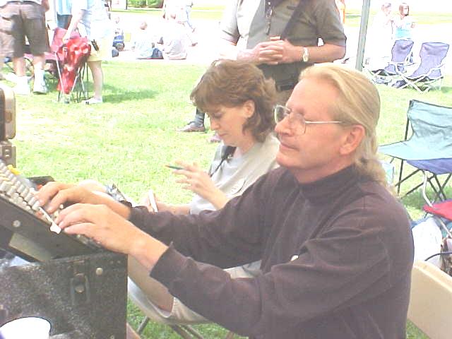 Art Bell, stage, lights and sound man from Calhoun's Most people came to the Vandalia Gathering this past weekend in Charleston to hear the old-time banjo, lap dulcimer and flat pick guitar players. Some of the best appalachian performers competed for recognition at the 27th annual event. It's a great family event, free of charge. The Hur Herald covers the event primarily because many of Calhoun's best musicians have participated in the event over the years. This year Jake Krack, Lester McCumbers and "Tube Check" Parsons performed. Jake Krack of Orma won first place in the 2002 fiddle contest (under 60), and placed in the top five fiddlers this year. Krack received roaring cheers and hand clapping when he and his mom Dara played in the cultural center theater Saturday night.