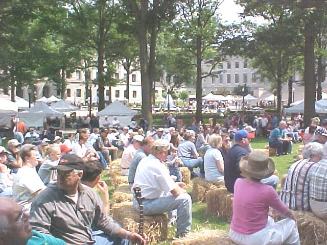 Time for a little rest The 17-year-old fiddler and recording artist is graduating from Calhoun High School this week and is planning to attend Berea College in Kentucky. His familiar face will likely be seen less around Sunny Cal, where he has often played for small groups and community activities. Krack has assembled a long list of musical achievements, awards and national performances. (See link to Jake Krack's Home Page on The Hur Herald) Held on the sprawling grounds of the state capitol and inside the state's beautiful cultural center, the event drew a large summer weather crowd. There was music and dancing everywhere, sometimes on four separate stages. From mountain flat footing to Celtic dancing, the Vandalia Gathering always brings to life the international heritage of West Virginia dance. The Gathering featured demonstrations of Irish, Scottish, Morris, Swiss, Croatian and Appalachian dancing in the Great Hall, with the audience invited to learn and join. Native Americans presented their dance and music outdoors on the Capitol grounds. The Vandalia Gathering exhibits the traditions and influences of West Virginia folk life. Ethnic and (very) American foods were served at the many food booths operated by area non-profits. The Craft Circle brings to one location a wide assortment of West Virginia artists and their works.