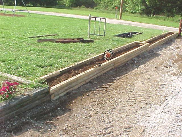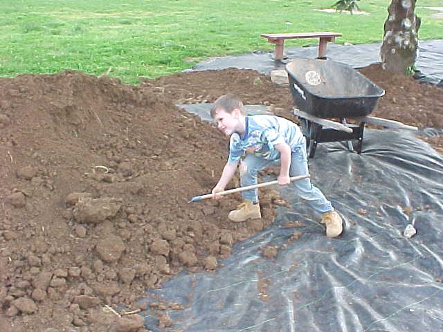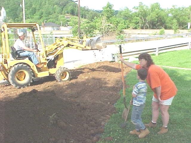 "Hey, is that cheating?" "No, that's working smarter!" A special thanks to Billie Houchin for hauling in tons of dirt and the use of his back hoe. We also want to thank the other landscaping students and family members who helped |