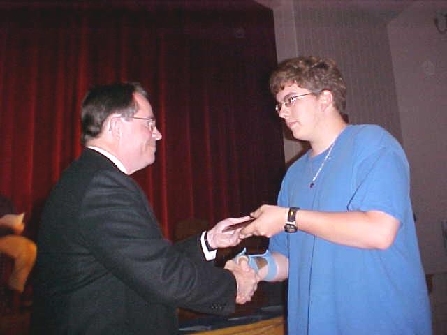 ![]() Honor student James Bailey receives one of many honors from Superintendent Ron Blankenship While some of the students received scholarships last night, they will be announced during the 79th Commencement tonight at 7 p.m., where 88 seniors will receive their diplomas. Principal Mike Offutt said this years seniors will receive more than one million dollars in scholarships. The Calhoun High School graduation draws one of the biggest crowds each year. At last account, it will be held in the gym. Among the county students recognized last night: CHARACTER EDUCATION THIRD GRADE 1st Place Barrett Evans Arnoldsburg 2nd Place Amber Wilford Arnoldsburg 3rd Place Jordan Mace Arnoldsburg FOURTH GRADE 1st Place Jacqlynn Snell Arnoldsburg 2nd Place Zachary Hanshaw Arnoldsburg 3rd Place Victoria Vineyard Arnoldsburg FIFTH GRADE 1st Place Kaitlin Carpenter Calhoun Middle 2nd Place Leslie Garrett Calhoun Middle 3rd Place Chelsey Ball Calhoun Middle SIXTH GRADE 1st Place Amber Verbus Calhoun Middle 2nd Place Dana Thomas Calhoun Middle 3rd Place Sarah Postalwait Calhoun Middle SEVENTH GRADE 1st Place Melissa Jarvis Calhoun Middle 2nd Place Matthew Houchin Calhoun Middle 3rd Place Vanessa McCormick Calhoun Middle EIGHTH GRADE 1st Place Tiffany Davis Calhoun Middle 2nd Place Breann Ford Calhoun Middle NINTH GRADE 1st Place Hanna Law Calhoun Middle 2nd Place Erica Wriston Calhoun High 3rd Place Andrea Hardway Calhoun High TENTH GRADE 1st Place Heather Richards Calhoun High 2nd Place Cynthia Wildfire Calhoun High 3rd Place Amanda Lay Calhoun High ELEVENTH GRADE 1st Place William Weaver Calhoun High 2nd Place David Dodd Calhoun High TWELVTH GRADE 1st Place Matthew Bonar Calhoun High 2nd Place Jennifer Thomas Calhoun High 3rd Place James Bailey Calhoun High GOLDEN HORSESHOE Hanna Law and Jade Nichols MATHEMATICS FIFTH GRADE 1st Place Chad Yoak Calhoun Middle 2nd Place Austin Moore Calhoun Middle 2nd Place Kayla Roberts Calhoun Middle SIXTH GRADE 1st Place Adam Hames Calhoun Middle 2nd Place Sarah Postalwait Calhoun Middle 3rd Place Christopher Lane Calhoun Middle SEVENTH GRADE 1st Place Hayli McKinstry Calhoun Middle 2nd Place Briana Blankenship Calhoun Middle 3rd Place Amie Carilli Calhoun Middle EIGHTH GRADE 1st Place Amanda Alcaraz-May Calhoun Middle 2nd Place Hanna Law Calhoun Middle 3rd Place David Lee Calhoun Middle NINTH GRADE 1st Place Adrienne Brown Calhoun Middle 2nd Place Mitchell Cunningham Calhoun Middle 3rd Place Josh Hanshaw Calhoun Middle MATH TEAM GRADES 10-12 Craig Arthur, James Bailey, Matthew Bonar, Ashley Deweese, Brandon Fox, Victoria Lamont, Sarah Lynch, Jamie McKown, Barbara Shock, Deborah White, Patrick Wildfire SPELLING FIFTH GRADE 1st Place Chelsey Ball Calhoun Middle 2nd Place Eli Dye Calhoun Middle 2nd Place Anthony Richards Calhoun Middle SIXTH GRADE 1st Place Elizabeth Duskey Calhoun Middle 2nd Place Samantha Starcher Calhoun Middle 3rd Place Andrew Limmer-Welsh Calhoun Middle SEVENTH GRADE 1st Place Amie Carilli Calhoun Middle 2nd Place Kayla Miller Calhoun Middle 3rd Place Sarah Moore Calhoun Middle EIGHTH GRADE 1st Place Lauren Randall-Myers Calhoun Middle 2nd Place Amber Pennington Calhoun Middle 3rd Place Chrissy Lovine Calhoun Middle WRITING ASSESSMENT Melissa Hartshorn Calhoun High, Alex McCumbers Calhoun Middle, Zachary Moore Calhoun Middle, Melissa Oshoway Calhoun High, Lauren Patrick Calhoun Middle, Kayla Roberts Calhoun Middle YOUNG WRITERS GRADES 1-2 1st Place Lester King Arnoldsburg 2nd Place Jared Haught Pleasant Hill 3rd Place Kristyn Starcher Arnoldsburg GRADES 3-4 1st Place Barrett Evans Arnoldsburg 2nd Place Sarah Lane Arnoldsburg 3rd Place Amber Wilford Arnoldsburg GRADES 5-6 1st Place Jessica Cosgrove Calhoun Middle GRADES 7-8 1st Place Cassie Mullins Calhoun Middle 2nd Place Kayla Miller Calhoun Middle 3rd Place Jamie Kennedy Calhoun Middle GRADES 11-12 1st Place Jake Krack Calhoun High 2nd Place Deborah White Calhoun High GOVERNOR'S HONOR ACADEMY Barbara Shock HOBY Alecia Alcaraz-May KNOW YOUR STATE GOVERNMENT DAY Marcus Davis, Zachary Houchin, Victoria Lamont, Samantha Parsons, Barbara Shock RHODODENDRON GIRLS STATE Jessica Gherke Susan Sullivan S.C.O.R.E.S. Deva Murphy SECRETARY OF STATE STUDENT VOTER/ REGISTRATION AMBASSADORS Matthew Bonar, Sarah Lynch, Ashley Deweese, Deva Murphy, Jessica Gherke, Laura Pfeffer, Leah Harold "SEMPER FIDELIS" AWARD Matthew Bonar TOP OF THE MOUNTAIN AWARDS James Bailey, Laura Pfeffer, Matthew Bonar, Patrick Wildfire, Jessica Gherke WEST VIRGINIA ALL STATE CHOIR Matthew Bonar, Victoria Lamont, Sarah Lynch HONOR GRADUATES Stephen Cason, Laura Hall, Amanda Johnson, Deva Murphy, Melissa Nelson, Tia Satterfield, Jessica Stull HIGH HONOR GRADUATES Trinity Arthur, James Bailey, Matthew Bonar, Jared Brewer, Ashley Deweese, Brandon Fox, Jessica Gherke, Leah Harold, Kara Haymaker, Jacob Krack, Sarah Lynch, Joseph Park, Laura Pfeffer, Bradley Stevens, Jennifer Thomas, Heather Weaver, Patricia Wildfire, Dana Yatauro NATIONAL MERIT FINALIST Patrick Wildfire |