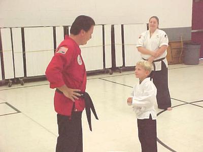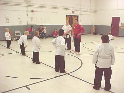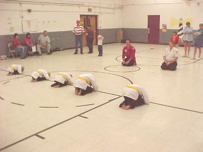 ![]() Students receive Yellow Belts By Dan Cosgrove On Saturday, May 31 2003, five karate students were tested, and received their yellow belts. For 12 weeks, as part of the Arnoldsburg's Lights On! after school program, these students practiced the skills necessary to achieve this honor. With their instructor Dawn Webb giving final instructions and encouragement, black belt master instructor Mickey Metz from the Aze-Ki Karate Academy in Glenville arrived to put the students through an arduous test lasting 2-hours. Students had to be able to count in Japanese and answer numerous questions asked by the master instructor. They also had to demonstrate the positions and moves necessary to advance to yellow belts. Parents, friends and relatives were impressed with the abilities demonstrated by the children and the thoroughness of the test. I also think I saw one or two moist eyes as students were presented with their belts and certificates. Congratulations to Nathan Cosgrove, Levi Gordon, Alexander Perrin, Trenton Phillips and Nicholas Smith.