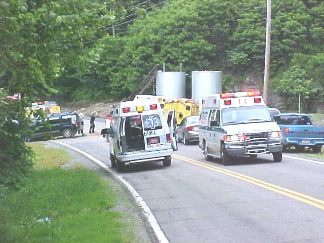First ambulance departing for Minnie Hamilton Health Care Center The Sampson vehicle was reportedly entering Route 5 from Leafbank Road when the accident happened. Sheriff Allen Parsons is investigating. The Grantsville VFD responded to the accident. One of the wrecked vehicles caught on fire after being towed to Furr's Wrecking, and the Grantsville VFD was summoned again at 12:47 p.m. to put it out.