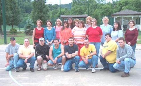 ![]() Front L to R: Kyle Lancaster, Matt Carper, Jay Fox, Kevin Tanner, Bruce Martin, Charlie Richards, Jerry Howell, and Paul Parsons. Back L to R: Tracy (Lane) Lancaster, Nicole (Higgs) Dean, Trinity (Vaughn) Keesee, Carla (Williams) Taylor, Marcie (Richards) Stump, Lori (Taylor) Parsons, Barb (Cunningham) McKown, Terri Bell, Jenny (Wilson) Downs, Lelia (Laughlin) Gregory, Alescia (Waller) Rhodes, and Lisa (Starcher) Honaker. |
