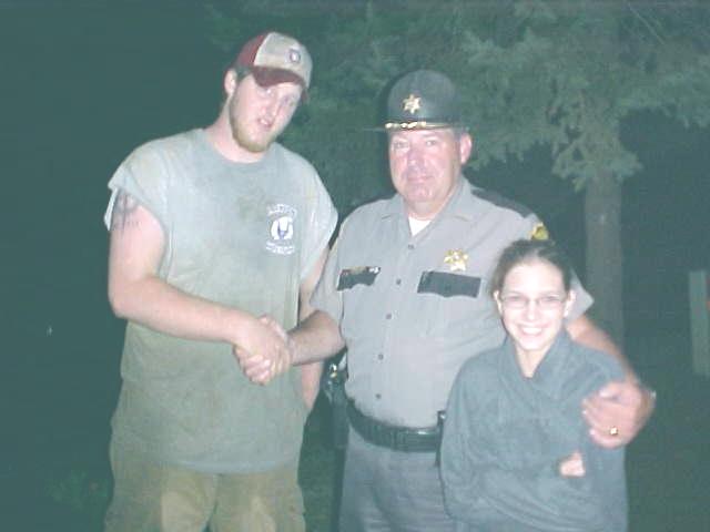 ![]() Ohio Couple with Sheriff Allen Parsons, relieved "This was a good ending call, for a change," said Sheriff Allen Parsons. Two lost ATV riders lost their way in Bear Fork country, after leaving a family gathering Saturday afternoon. Eric Lawson, 19, and Melissa Schartiger, 17, of Massilon, Ohio left the Schartiger family barbecue for a spin. Several hours later, family members called for help. After family members and neighbors failed to locate them before dark, Sheriff Parsons called for additional 4-wheelers to start a more intensive search in the remote area. Dozens of people with 4-wheelers responded, gathering at the Brian Hastewell residence on Frozen Run. Before the second group of searchers departed, the couple returned, unharmed and relieved. "This is what is great about living here. People come out and help whenever they're needed," said Hastewell.