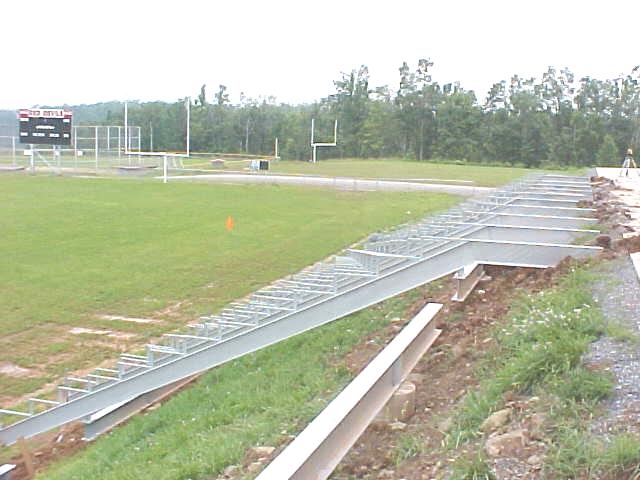 New bleachers are being installed on the home side of the Calhoun Middle/High School athletic field this week. Workers are lifting steel framing on concrete pads. The new bleachers will seat an additional 800 people, according to principal Mike Offutt.