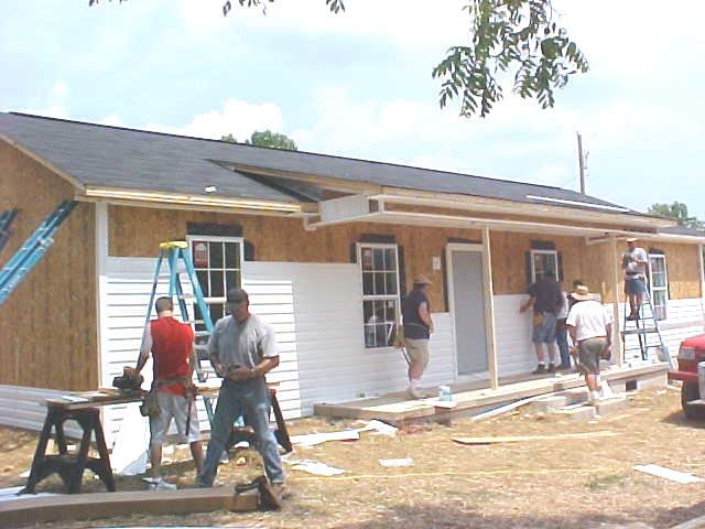 They were climbing ladders, pounding nails, painting walls, pulling wires and hanging cabinets. About 80 members of "Builders for Christ" returned to Big Bend this week to complete work on a new parsonage for the Brooksville Baptist Church. The 1,300 square foot house, located across the road from the Big Bend Cemetery, is being built on land donated by the Cain family. The North Carolina group actually has 250 members who support the ministry, according to Bill Donaldson of Burlington NC, who said "I'm sorta the foreman." Donaldson said this was the 10th parsonage the group has built, often supplying much of the building materials from companies in their area. "We use this house building as an excuse to spread the message of the Lord Jesus Christ," he said. "We have a wonderful group of people and people are coming to the Lord all the time." Many of the workers stayed at the new recreational and activities building behind the church, and others came in RVs which are parked at the church. Donaldson said, "One of their biggest treats was food prepared by the "Brooksville Women." 663s |