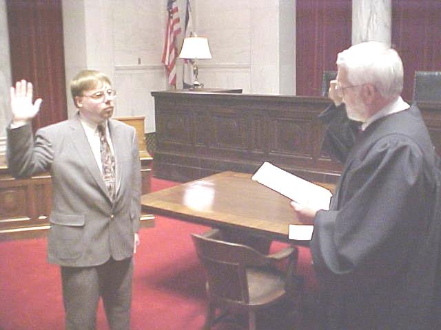 MINNEY SWORN AS CALHOUN PROSECUTOR - Justice Larry Starcher Performs Ceremony |