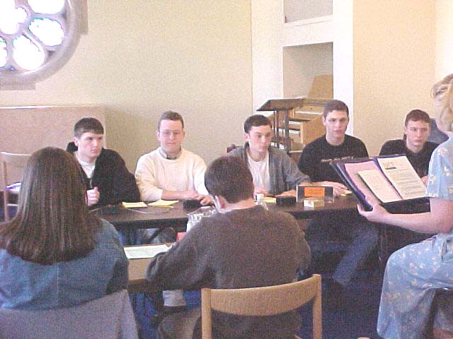 Submitted by Maggie Bennett The CCHS Academic Team has completed its 2000-2001 season with the West Virginia Quiz Bowl Competition at West Virginia Wesleyan College in Buckhannon on Monday, March 19. Several teams from all over West Virginia took part in this year's state tournament. You may recall that Calhoun won both its division and the overall tournament two years ago. They did not fair as well this year but could certainly hold their heads high having finished the morning rounds with a point total of 830, placing them just after the top 4 AA teams whose point totals were 1090, 850, 850, and 850. The top 4 scoring teams in divisions A, AA, and AAA went on to compete in the afternoon to determine winners in each division and overall. Participating for Calhoun this year were Christeallia Amorosi (not pictured), Travis Deuley, Anna Hughes, Scottie (Sparky) Westfall, Andrew Whipkey, Patrick Wildfire, and Shane Yeager.