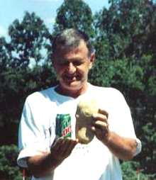 | By Ed Tingler Russ Ferrell was crowned the new Tater King after some of the spuds he grew this year weighed well over two pounds. A full sized Ford pickup truck, (clear full), a Chevy pickup and Toyota was required to haul all these taters away. When asked what the secret was to growing these big taters, Ferrell simply replied, "It is in the new fertilizer we have developed." Well, we had to ask about the fertilizer and were surprised at what he told us. Ferrell told us, Jamie Wagoner, (him being educated and all,) allowed he could come up with a super-duper tater growing plant food. So he set down and went to work. After much paper work he said, "Now Russie, I think I have it. We will grind up all the coon gizzards we can come up with, mix in a little hound droppings, add some bird feathers. Then we'll mix in some mountain spring water and spray the tater patch". "Well," Russ said, " We seen the results yesterday, over a hundred bushel of taters off that little patch." Russ said he would like to thank all the good people who came out and helped pick up all those taters. We would never have made it without them. We had Judy and Carl Brannon and their kids Berlisha and Randy, my family Kate, Russie and Josh, Barb, Brandon, and Ed Tingler. Forest Tingler and of course Jamie {the educated one) Wagoner.