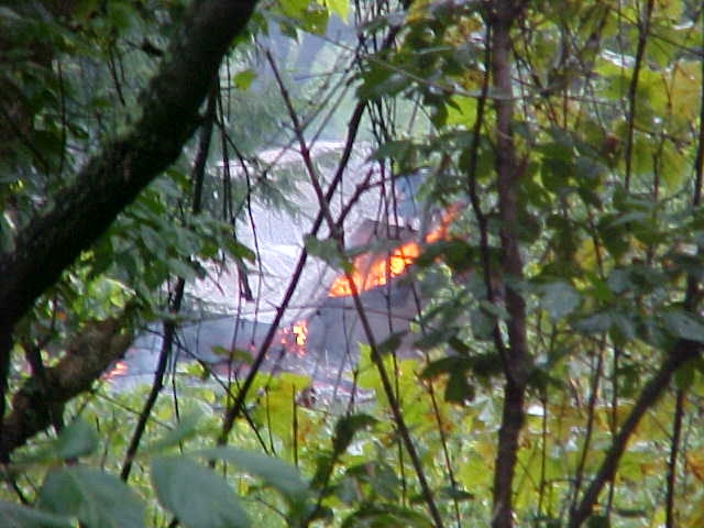 Arnoldsburg firemen investigate blaze Fire completely destroyed a one-story dwelling and its contents on Altizer Road yesterday evening. The house was owned and occupied by Donald Hall. He was not at home when the fire broke out. The fire was discovered at 5 p.m. after the dwelling was nearly burned to the ground. The Arnoldsburg VFD responded with three units, but did not attempt to cross the waters of the West Fork with pumper trucks. Firemen did go to the scene. The farm was the original W. R. and Tapley Sapp place, once accessed by a swinging bridge. |