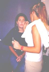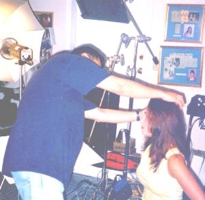 The first step in the process was getting the proper make-up applied by make-up artist Danielle Welling of Detroit. This step takes up to one hour. When Sam is ready, the girl is perched on a milk crate with her feet propped on a stack of phone books and the shoot begins. Lights are adjusted, hair is arranged (which has been washed and dried only, no curling or hairspray) and often a fan is turned on to give the girl a wind blown look. After two to three hours, squeals of delight are heard from everyone as they view the photos on the digital camera. Amazing! Definitely worth three hours under the hot lights. In between the photos Keith of CAS cable in Parkersburg, made a commercial for the store using the same models. The girls made several changes of clothes, posed, strutted and twirled. For a thirty second commercial several minutes of footage is shot and taken back to the studio to be edited. The finished result will be aired on all Parkersburg High School televised football games. Those participating included three Parkersburg Homecoming Queens, Jane Engelke, Keri Fussell and Allison Anderson, Jennifer Baileys the current Ripley 4th of July Queen, and Ashlee Small the current Wirt County Fair Queen. Allison Anderson is the current Black Walnut Festival Queen.
