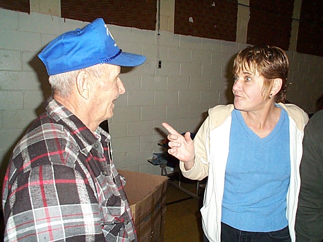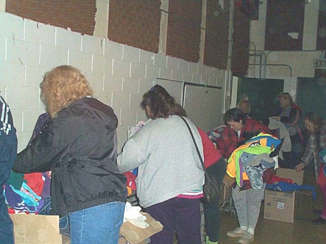 local families. Richards said country and bluegrass music was returning to the Center tonight. Janet Muir, secretary for the group, said the organization first made deliveries to Webster County in 1997. "We try to distribute things people really need," she said. "There are no strings attached." A large number of people filled their bags and cars with clothing and other items. Richards, who was busy helping with the event, was excited about winning a Wal-Mart trip to Arkansas after the company recognized her selling skills at the Spencer store. She said the store received a large shipment of forty pound boxes of chicken feet by mistake. "Now you know chicken feet is not a hot item," she said. Richards set out to sell the chicken feet at her register at a markdown price of $5. "I told the customers they could make their own chicken stock, have "hot" breaded chicken feet and any other way you could fix them. Do you know, I sold bunches of those chicken feet." Wal-Mart is using Richard's methods to teach other employees selling skills.