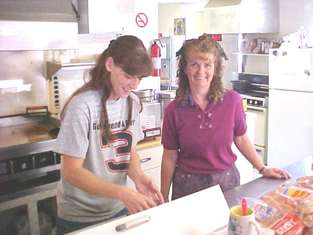 Owner Dori Gray (left) and Patty Gray serving folks yesterday Joe Jo's Diner is open on Main Street in Grantsville. "People seem to like my home cooking," said owner Dori Gray. "We have some daily homemade specials." The restaurant, starting Monday, is open from 11 a.m. until 10 p.m. seven days a week, with in-town deliveries available. Besides the home-cooked specials, the menu includes a wide variety of sandwiches, soups and ice cream specialties. "I really like doing this, and so far, things have been going really well," said Gray. |