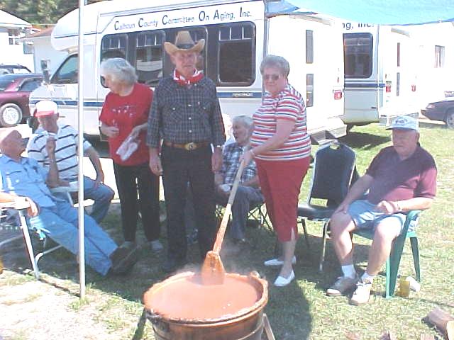 It takes hours and hours of mixin' and stirrin' The Third Annual Heritage Week started Monday at the Calhoun County Committee of Aging. Yesterday was apple butter day, an activity that commenced at 7 a.m. and was not completed until late in the evening. Today there will be buggy rides (in old fashioned dress) starting at 10:30 a.m. Thursday is "Old Fashioned Entertainment Day." ![]()