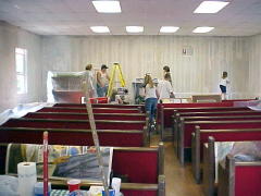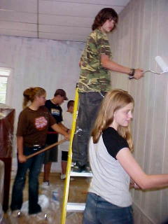... with volunteer help from SC church The Sycamore Baptist Church on the Mt. Zion Ridge is getting a face-lift and some much needed improvements, with help from a South Carolina church group. The church was closed for several years until it was re-opened in 2003 with the help of Rev. Will Finley of Elmira, Braxton County. A youth group, eight kids and five chaperone's, from the Bessie Road Baptist Church in Piedmont, South Carolina, will be here all week doing everything from painting to concrete work. The church first received a new roof, some time ago, but now the building is getting a makeover, thanks to the SC volunteers who also raised funds for the project. Regular church services are scheduled every Sunday.