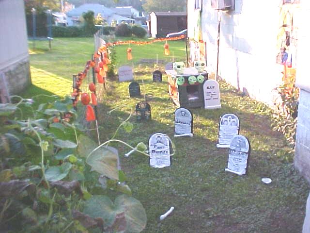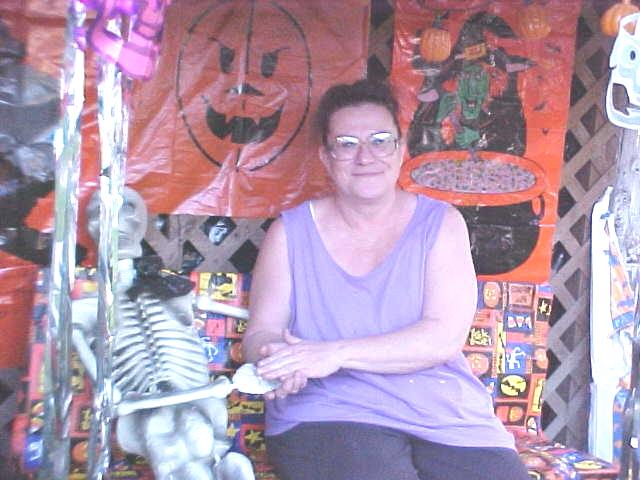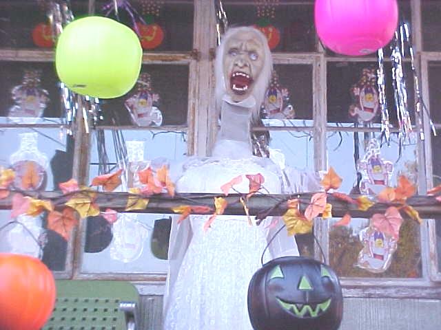 The porch goblin says hello It's walking into an imaginary world, particularly for kids. There is halloween stuff everywhere, on the porch, under the porch and beside the house. Hanging ghosts, goblins, skeletons, pumpkin heads and a cemetery. Etta Coon says she started displaying for halloween several years ago. "I just keep collecting more and more. The neighbors even bring me things," she said. "We really get into Trick or Treat night, and believe me, lots of kids come." Trick or Treat Night in Grantsville is Friday, October 31 from 6 to 7 p.m.