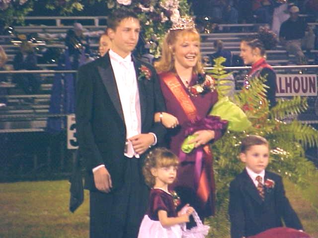 ![]() The Calhoun High School homecoming queen was crowned at half-time Friday night. Brittany Church received the honors for 2003. She was escorted by Ryan Bremar. Crown Bearer is Eli Stump and Flower Girl is Sophia Steigleder. |