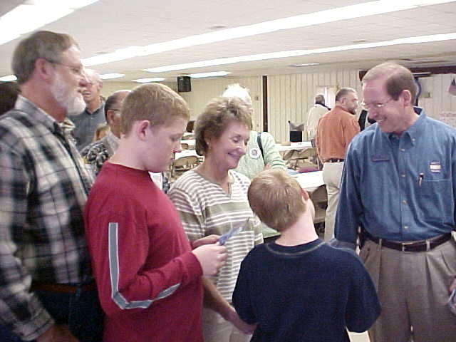 ![]() Lloyd Jackson (right), candidate for governor, worked the crowd yesterday
