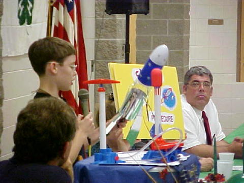 Roane County rocket boy Madison Sergeant WVU Extension 4-H Youth Development Director Debbie McDonald was the featured speaker of the evening, after being somewhat late, having struck a deer. Madison Sergent, a Roane County and state 4-H winner, gave a visual presentation on rocketry. He is the son of Mr. and Mrs. Mark Sergent of Spencer. Charles Thomas of the West Fork Cardinals club was recognized as an outstanding 4-H leader and Ryan Bremar received the "I Dare You" award, which included a $500 scholarship to an out-of-state leadership conference. |